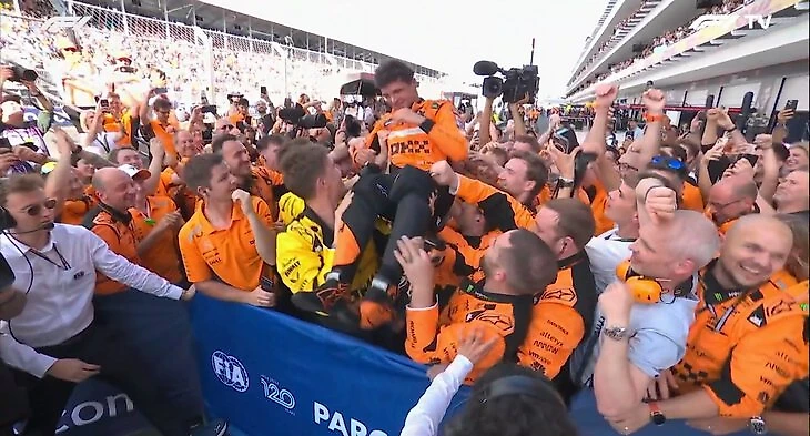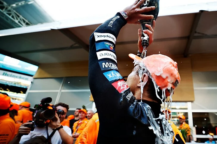 «Ф-1» в восторге от первой победы Норриса! Команда качала, шеф «Феррари» облил шампанским, гонщики – 👍 из машин