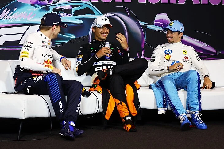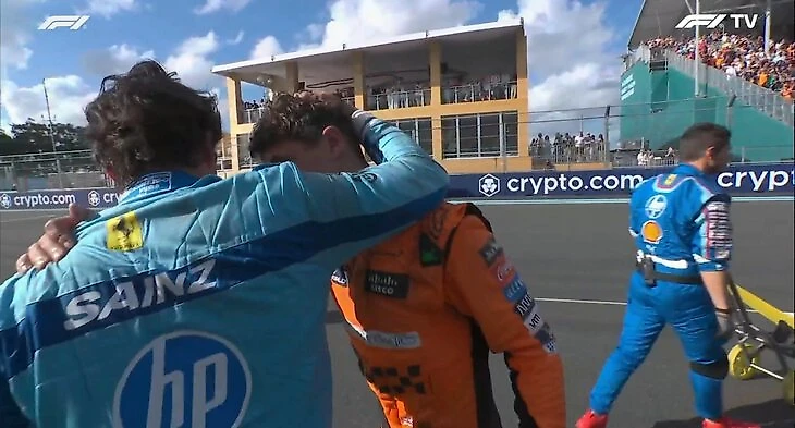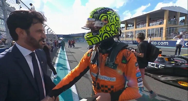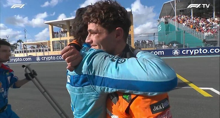 «Я очень счастлив за Ландо. Сказал ему, что он должен остаться сегодня [в Майами]. Он попробует изменить время рейса. Ему нужно изменить его, он только что выиграл гонку. Это невероятно особенный момент».