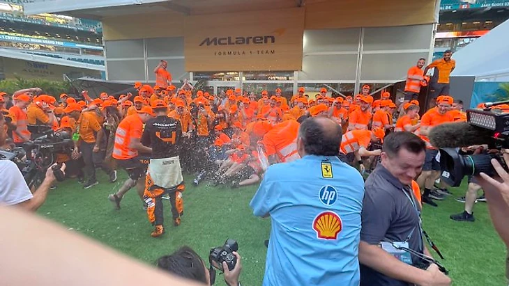 В момент пересечения финишной черты «Макларен» – да и все в паддоке Майами буквально взорвались.