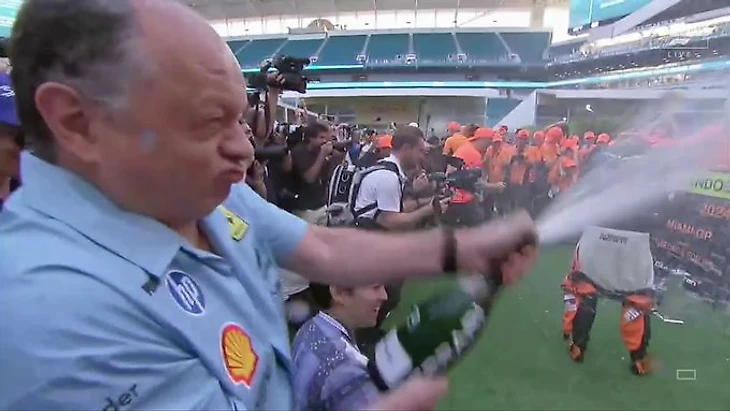 А к послеподиумному празднованию внезапно присоединился руководитель «Феррари» Фредерик Вассер: