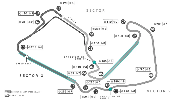 Трек «Сильверстоуна» – один из самых скоростных и суровых с точки зрения виражей и перегрузок в календаре: дистанция чуть ли не самая большая в календаре (круг – 5,8 км), но проезжают его за 85 секунд в квале и 90 секунд в гонке. Тут много быстрых и техничных виражей, резких смен направлений и критических точек для разгона и торможения. Важность пилотажного мастерства и адаптации к новым траекториям здесь так же важна, как и баланс машины, и попадание в окно настроек.