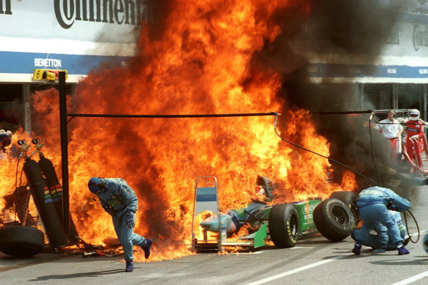 В 1994 году в Хокенхайме так же произошел случай, когда пилот оказался в огненной ловушке. На 15 круге Йос Ферстаппен заехал в боксы для смены резины и дозаправки. Однако механик, пытаясь вставить топливный шланг в горловину бензин начал брызгать во все стороны, облив пилота, машину и механиков. Топливо попало на раскаленные тормоза после чего машина превратилась в огненный шар. Пожар был быстро потушен и серьезных травм никто не получил.