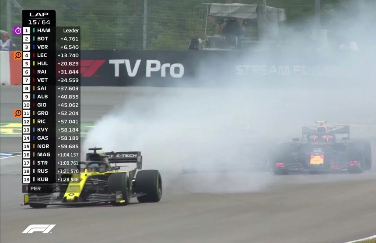 На 15 круге сгорел двигатель Рено на болиде Риккардо. Во время виртуального пейс-кара Леклер и Хюлькенберг заехали за новыми промежуточными шина, после чего стали стремительно приближаться к лидерам.