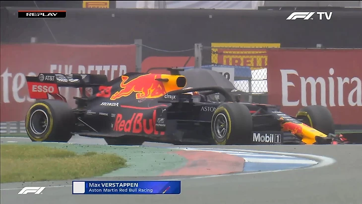 Многие пилоты решили, что трасса уже достаточно подсохла и решили переобуться на слики. Но если «Феррари» решила поставить самый мягкий состав, то «Ред Булл» выбрал для Ферстаппена средний по жесткости комплект, что привело к развороту в предпоследнем повороте.