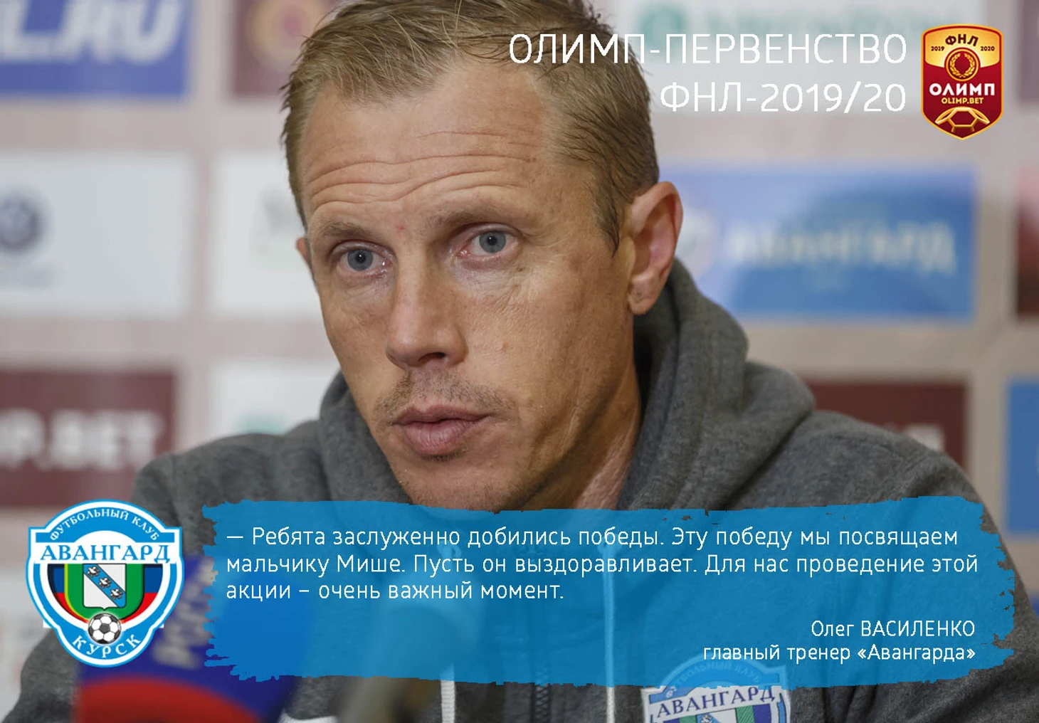 Курский «Авангард» передал все cобранные на матче 15-го тура Олимп-ФНЛ с «Армавиром» деньги на лечение 6-летнего Миши Алябьева, который болен острым лейкозом и семье которого требуются средства на продолжение терапии в столичной клинике.