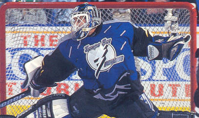 Дэн КЛУТЬЕ. Задрафтован "Рейнджерс" в 1 раунде, под общим 26 номером на драфте 1994 года. 26.06.1999 "Рейнджерс" обменяли Клутье, Никласа Сундстрема и 1й, 3й раунды драфта 1999 г. в "Тампу" на 1й раунд (4й общий номер) драфта 1999 г. Смена места вряд ли помогла Дэну. За свою карьеру в "Молниях" Клутье проиграл 43 матча при 12 победах и 6 ничьих. Всего в команде провел 2 сезона, полная статистика: