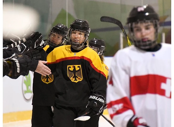 В группе «Б» днём первыми играли сборные Германии и Швейцарии. Немкам нужна была желательно победа в основное время, чтобы пробиться в плей-офф, а их соперницы уже готовились к серии на выживание, и Германия могла быть одним из соперников в этой серии. Немки быстро взялись за дело и уже на пятой минуте Наеми Бар реализовала командное удаление. Однако на перерыв команды ушли при ничейном счётё, это Рахел Энзлер восстановила равенство в матче. Но всё же победное слово осталось за немками: сёстры Луиза и Лилли Велке соорудили шайбу в начале второго периода, которая стала последней в матче. Германия сделала всё, что могла, и ждала вечерней игры между Финляндией и Чехией.