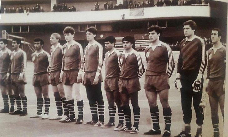"Нефтчи" во время турне по Ирану. Ахмедов - пятый слева в нижнем ряду