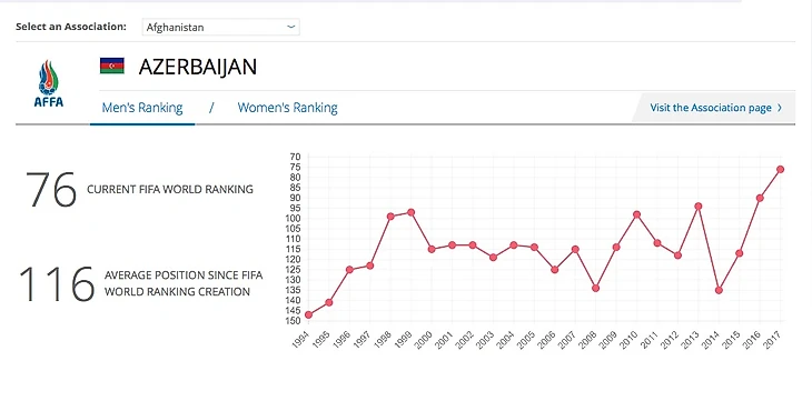 Такого не было с 1994-го года, то есть со дня, когда ФИФА начала учитывать показатели сборной Азербайджана в мировом рейтинге. Национальная команда Азербайджана поднялась на 76 место, что является лучшим показателем за все время.