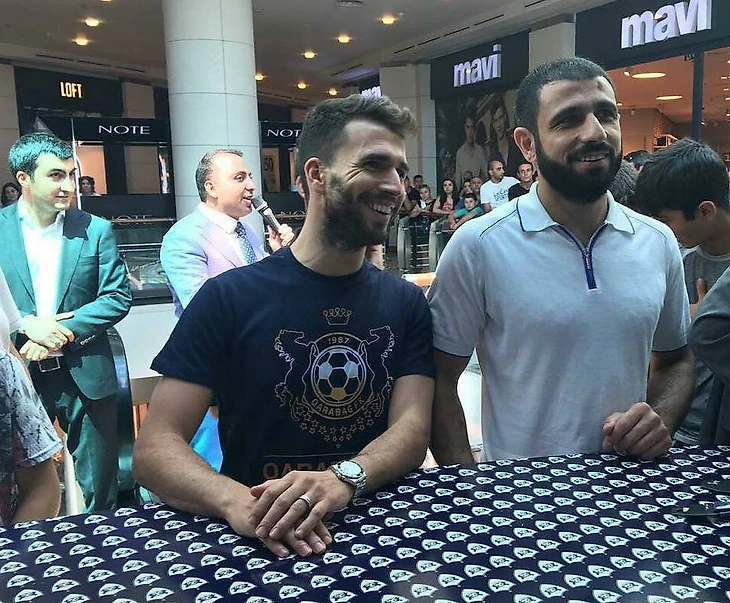 Из первой команды пришли только те игроки, кто травмирован и не сможет сыграть против "Шерифа" уже во вторник. Это капитан Рашад Садыгов и испанский полузащитник Дани Кинтана. Приход ведущих игроков "Карабаха" вызвал ажиотаж среди болельщиков, и Садыгов с Кинтаной не отказали никому в фотографиях и автографах.