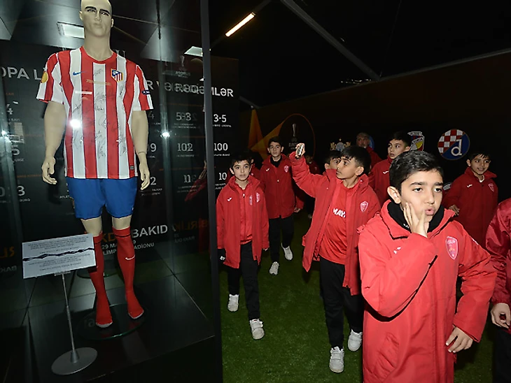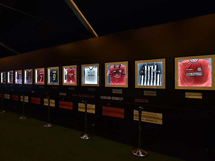 Если говорить непосредственно о самой экспозиции, то здесь представлены футболки, мячи и бутсы, "участвовавшие" в памятных матчах Лиги Европы. Конечно же, у местной публики наибольший интерес вызывают экспонаты, связанные с мадридским "Атлетико". Слоган "Azerbaijan - Land of Fire" два года красовался на футболках "Атлетико", послужив формированию фанатской базы команды в Азербайджане.