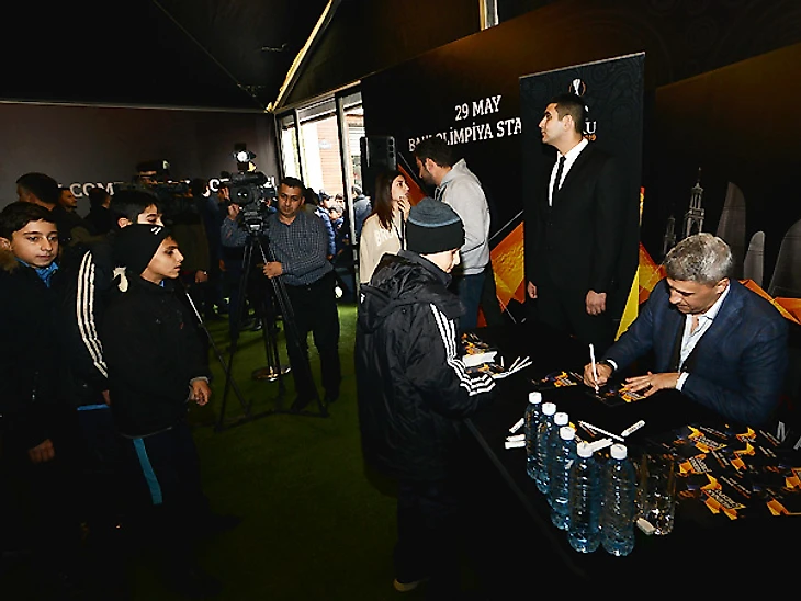 Большой ажиотаж вызвал приезд Эрнана Креспо. Экс-звезда сборной Аргентины совсем недавно был назначен главным тренером "Банфилда", но нашел время на приезд в Баку. Креспо будет почетным гостем и на самом финале Лиги Европы, который состоится 29 мая. К приезду Креспо подготовились члены бакинского фан-клуба "Интера", что стало огромным сюрпризом для аргентинца: