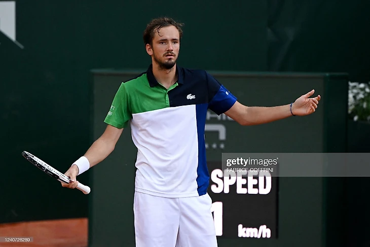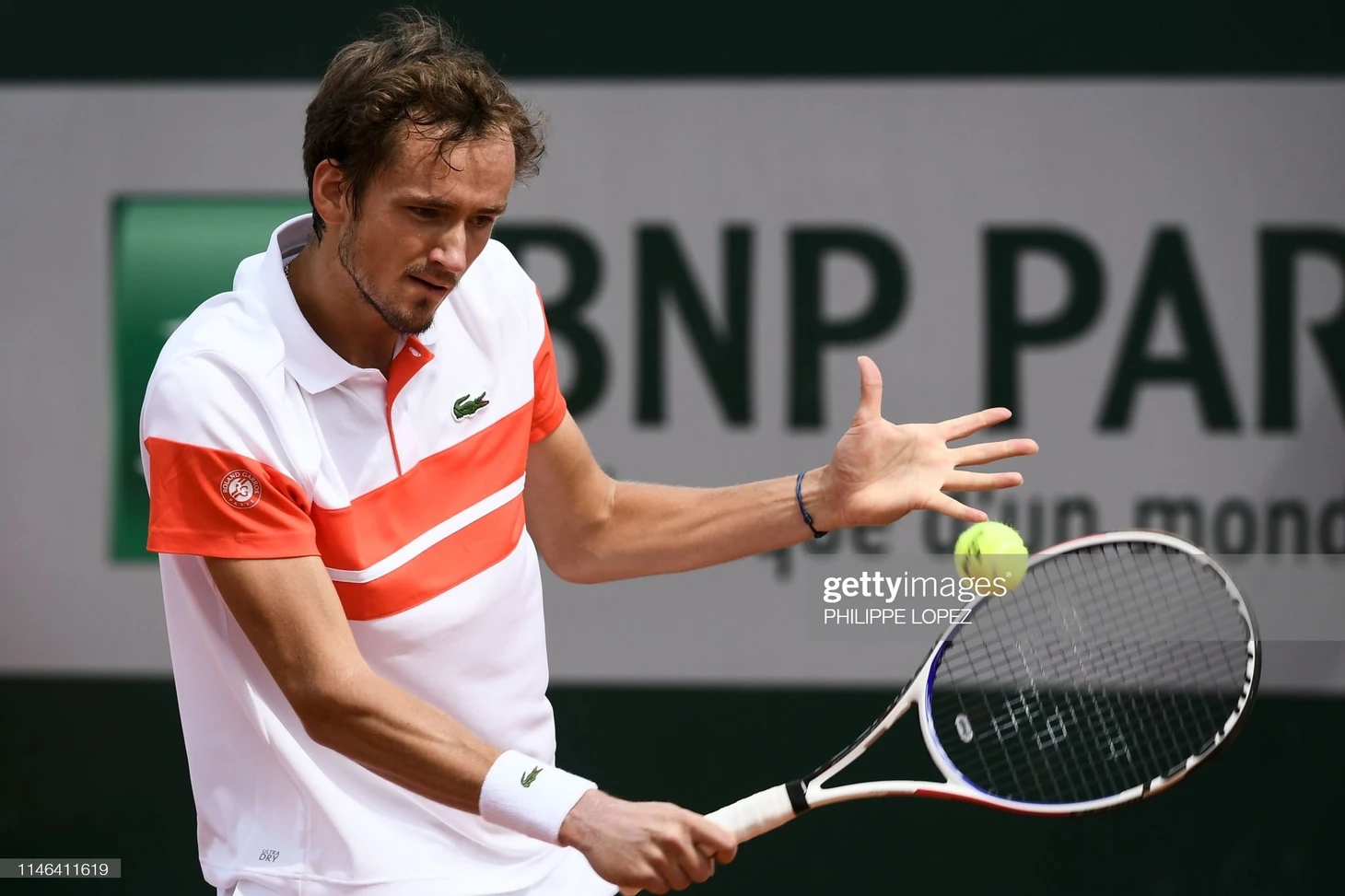 Затем наступил Ролан-Гаррос. Российский теннисист покинул турнир уже в первом раунде, проиграв Пьеру Эрберу. Оба соперника были в форме, произведенной на одинаковом шаблоне , но в разных цветах - Даниил играл в бело-оранжевом.