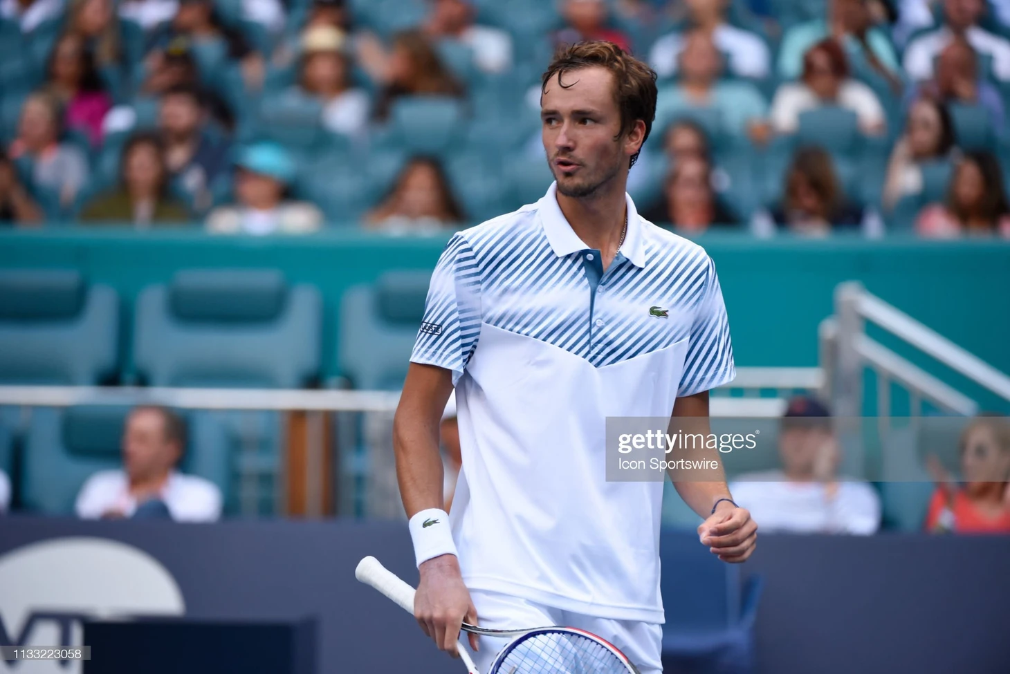 Сотрудничество российского теннисиста с известным теннисным брендом началось в 2019 году. Первый турнир с крокодилом на поло Даниил отыграл в Майами, где сражался в четвертьфинале с самим Роджером Федерером. Медведев играл в бело-голубом сочетании, верх поло был с узором в синюю полоску.
