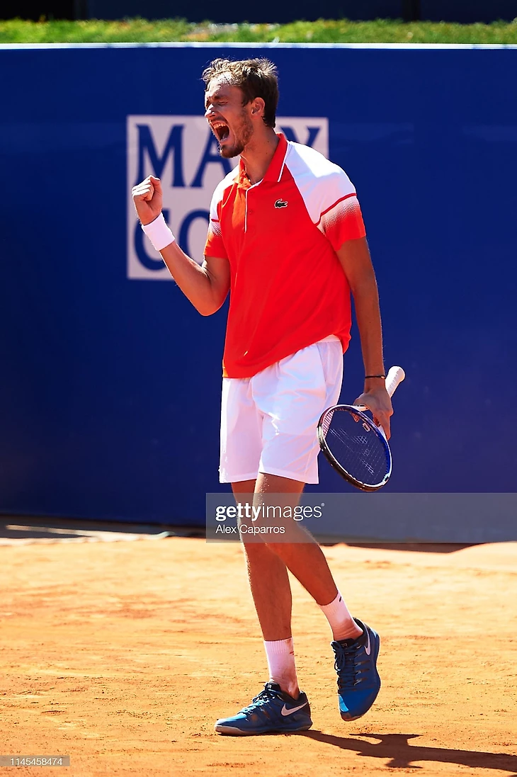 Вскоре наступил грунтовый сезон и Медведев надел на себя стандартную форму, как и многие другие амбассадоры бренда из Франции - белые шорты и поло с синими и красными деталями. Именно на эту форму пришлась сенсационная победа Даниила над Новаком Джоковичем в 1/4 Мастерса в Монте-Карло.