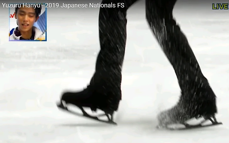 Далее я покажу на примерах, что подобная практика используется многими фигуристами и является нормой. Для примера возьму прошедший чемпионат Японии-2019, где крупным планом снимают коньки фигуристов.