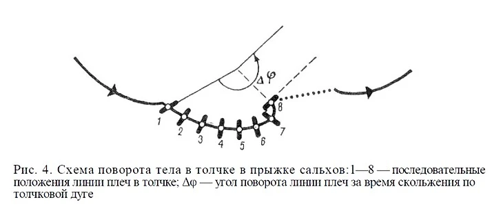 Посмотрите, как описана схема прыжка сальхов в книге Мишина «Прыжки в фигурном катании»: