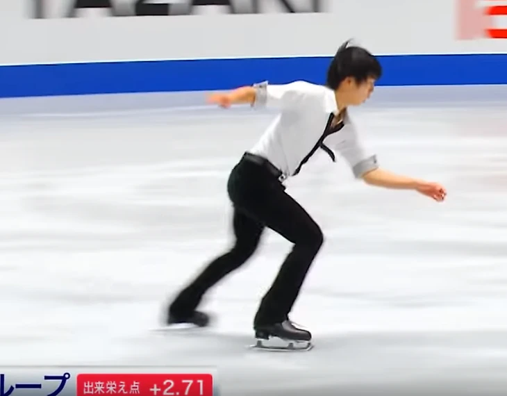 Юзуру Ханю, отрыв с 4T (да-да, тоже зубцовый прыжок, тоже кладет ребро на лед!) в ПП на ЧЯ-19: