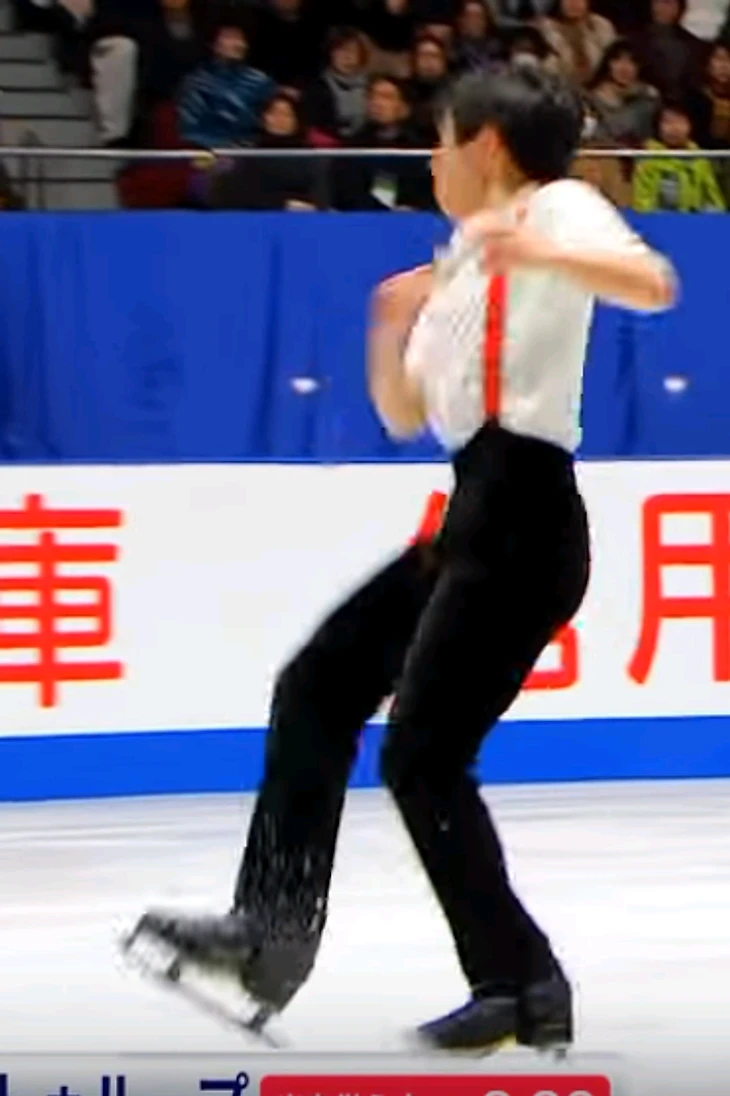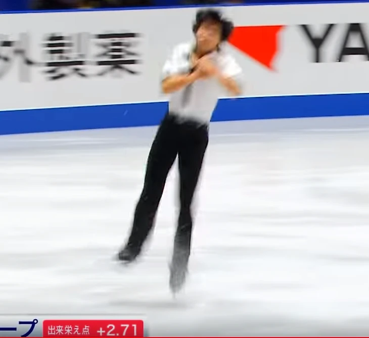 Юма Кагияма, отрыв с тройного флипа (3F+3T) на чемпионате Японии-2019 (GOE +2,74):