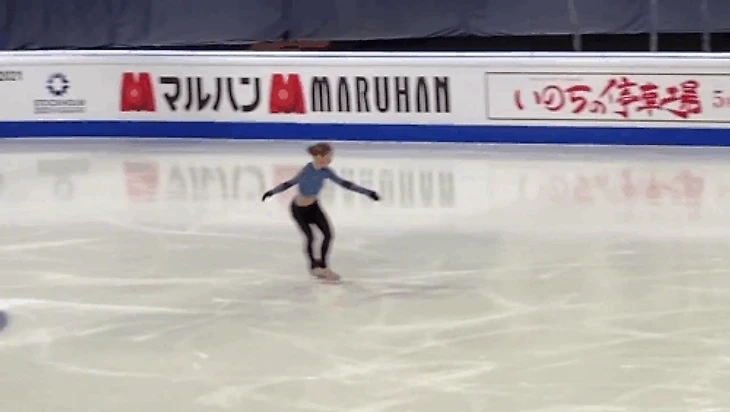 Сольный четверной тулуп, выполнен на тренировке перед ЧМ-2021, причем выполнен одним из последних прыжков во второй половине программы.