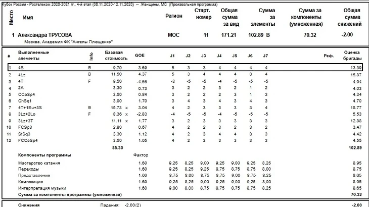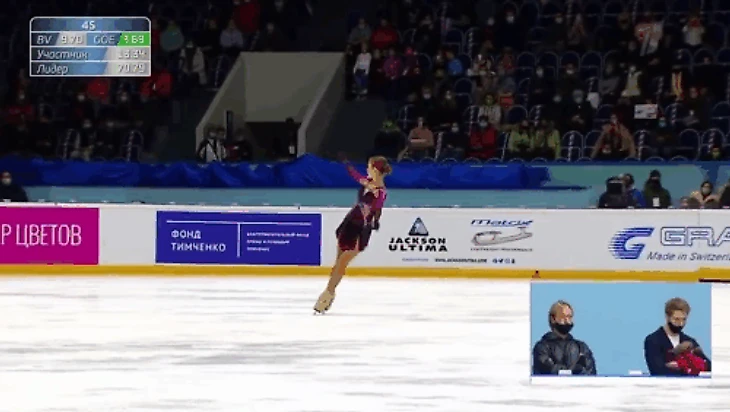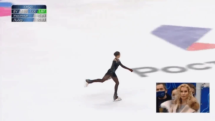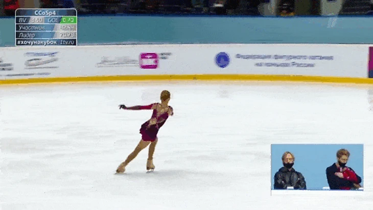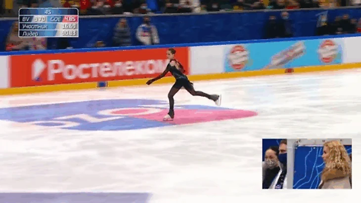 Но что же с аналогами в «Хрустальном»? Туго, мягко говоря. Одна попытка и ту даже предвзятые судьи не засчитали – речь идет о каскаде Камилы Валиевой с ФКР. Стоит заметить еще то, что Саша исполняла всегда ойлерный каскад с четверным прыжком во второй половине, что даже с травмой она его выезжала, а Камила Валиева не смогла исполнить даже в первой половине.