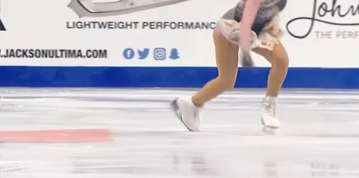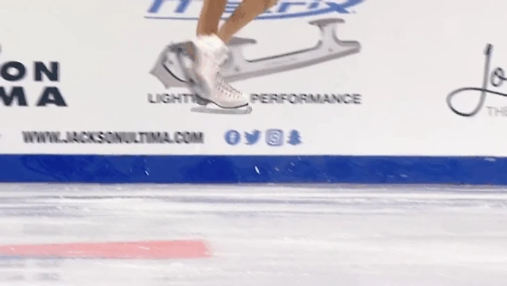 А вот с такого ребра прыгает флип Анна Щербакова. В протоколе за это стоит ГОЭ +4.50, это за отсутствие сложного захода и за неясное ребро.
