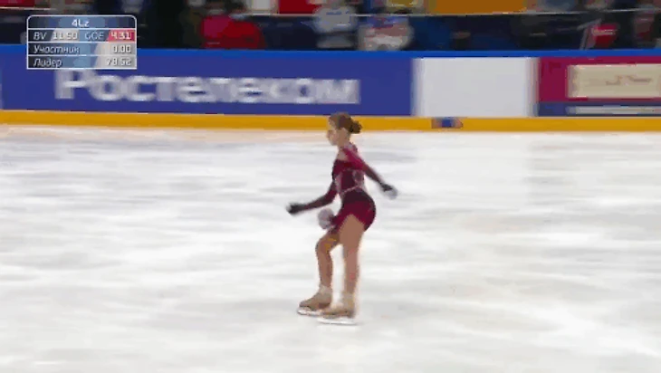 Четверной сальхов, который Саша якобы не может исполнить два года и который надо срочно убирать, этап Кубка России в Казани. Будь этот прыжок исполнен на международном старте под эгидой ISU, его можно было бы признать лучшим женским четверным сальховом