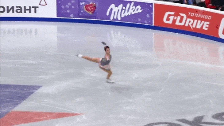 А также совсем редкий каскад в исполнении Саши – четверной сальхов-тройной тулуп. Исполнялся от силы пару раз на тренировке, но автор не теряет надежды увидеть его на соревновании. Первое исключение из правил.