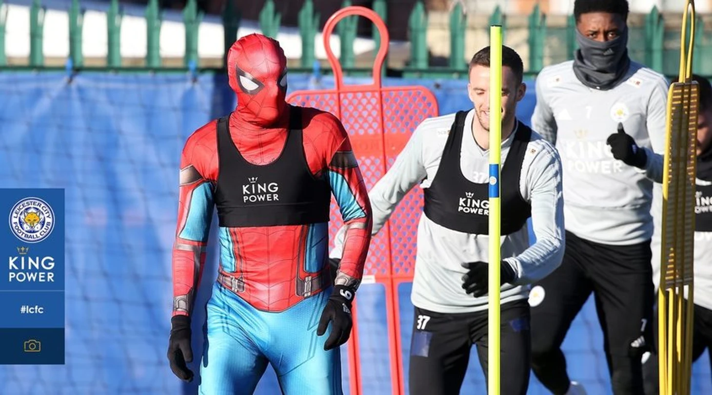 Нападающий «Лестера» Джейми Варди провел тренировку в костюме Человека-паука.