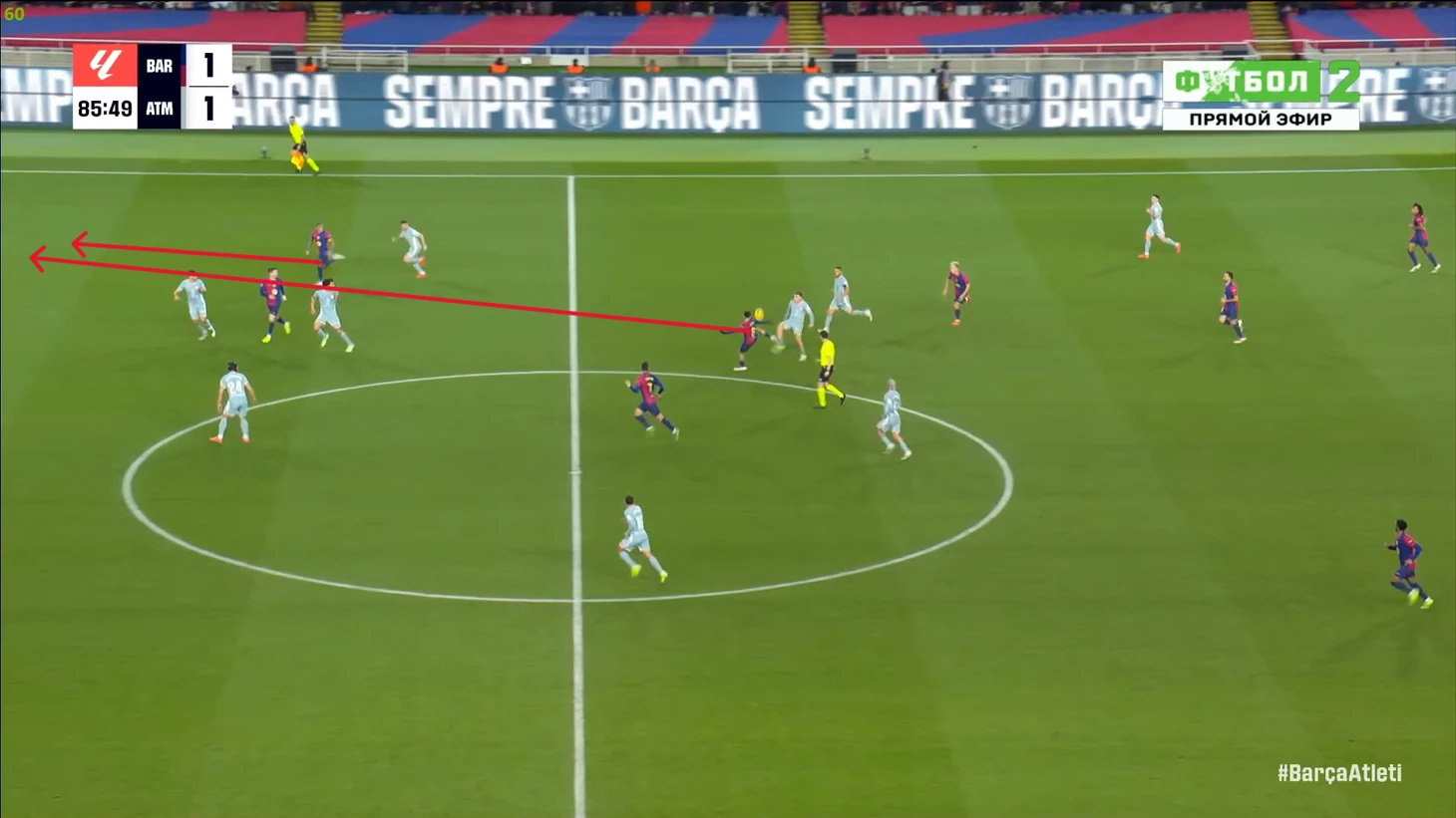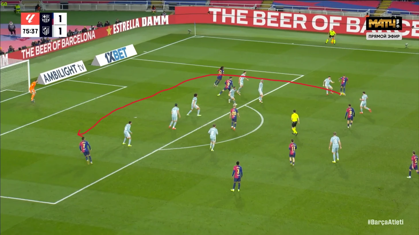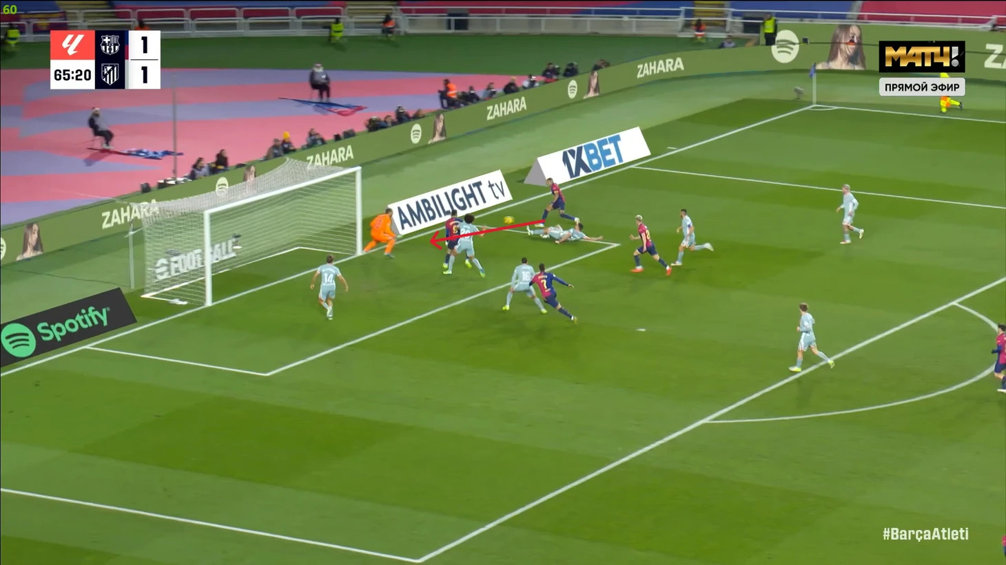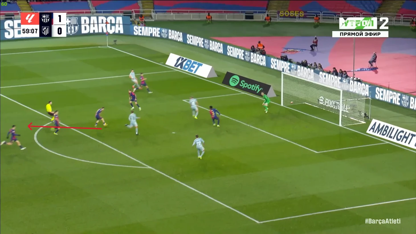 Тем не менее, «Барса» продолжала ловить «Атлетико» на контратаках. Команду которая вообще не атаковала (как и говорил Симеоне на пресс-конференции), они умудрялись ловить на контратаках, фантастика просто! И опять же, все это через фланг Рафиньи. Вот самый показательный момент в этом плане: