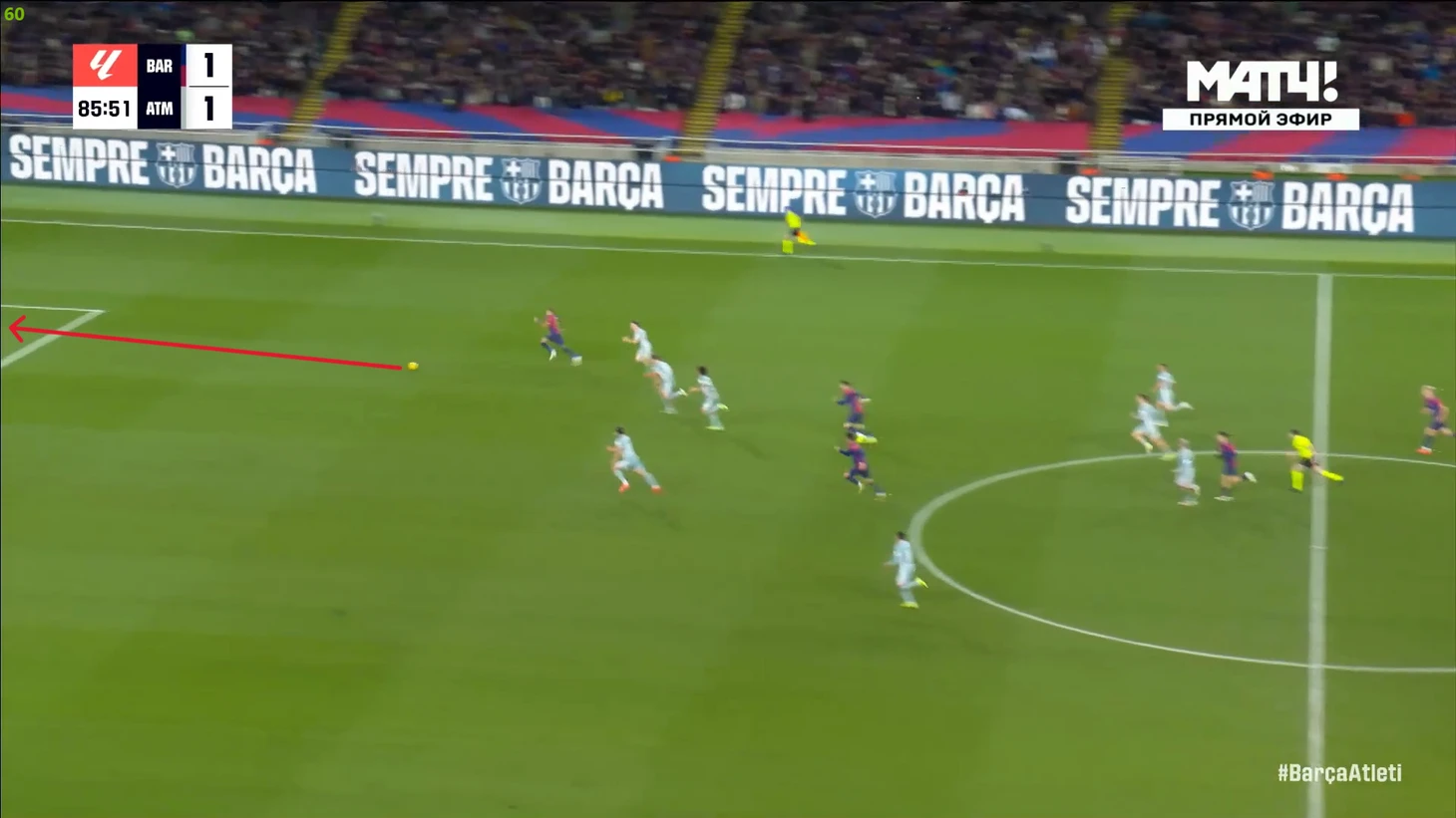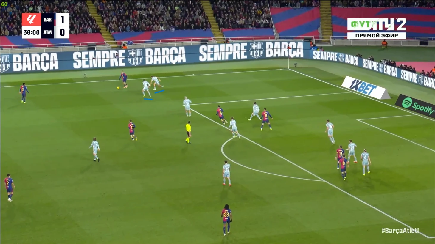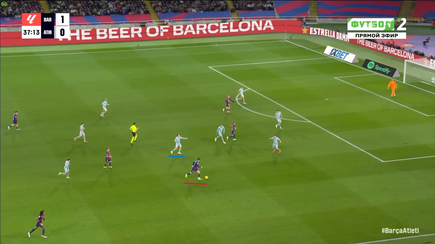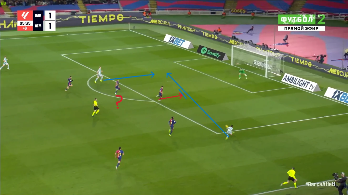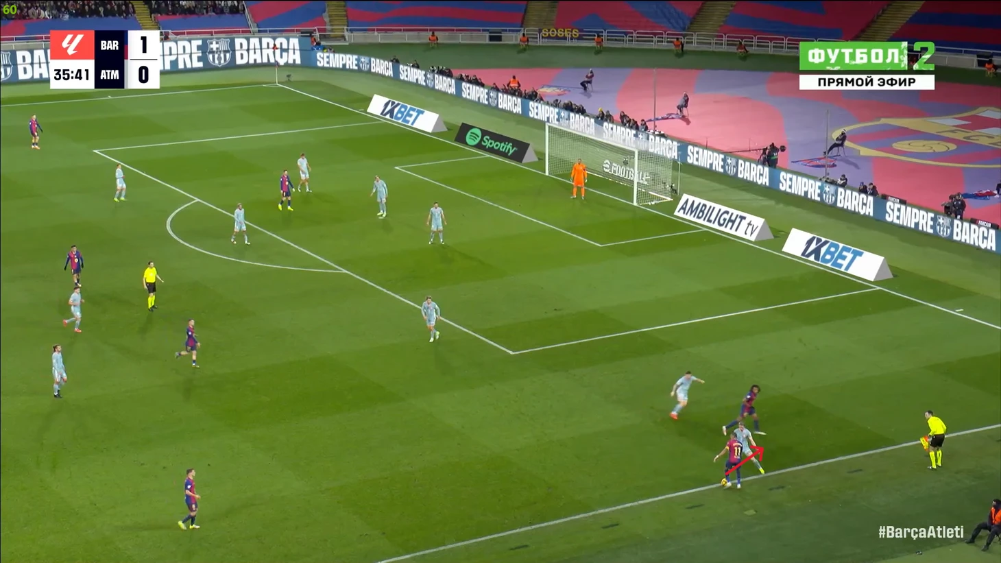 Тем не менее, «Барса» продолжала ловить «Атлетико» на контратаках. Команду которая вообще не атаковала (как и говорил Симеоне на пресс-конференции), они умудрялись ловить на контратаках, фантастика просто! И опять же, все это через фланг Рафиньи. Вот самый показательный момент в этом плане: