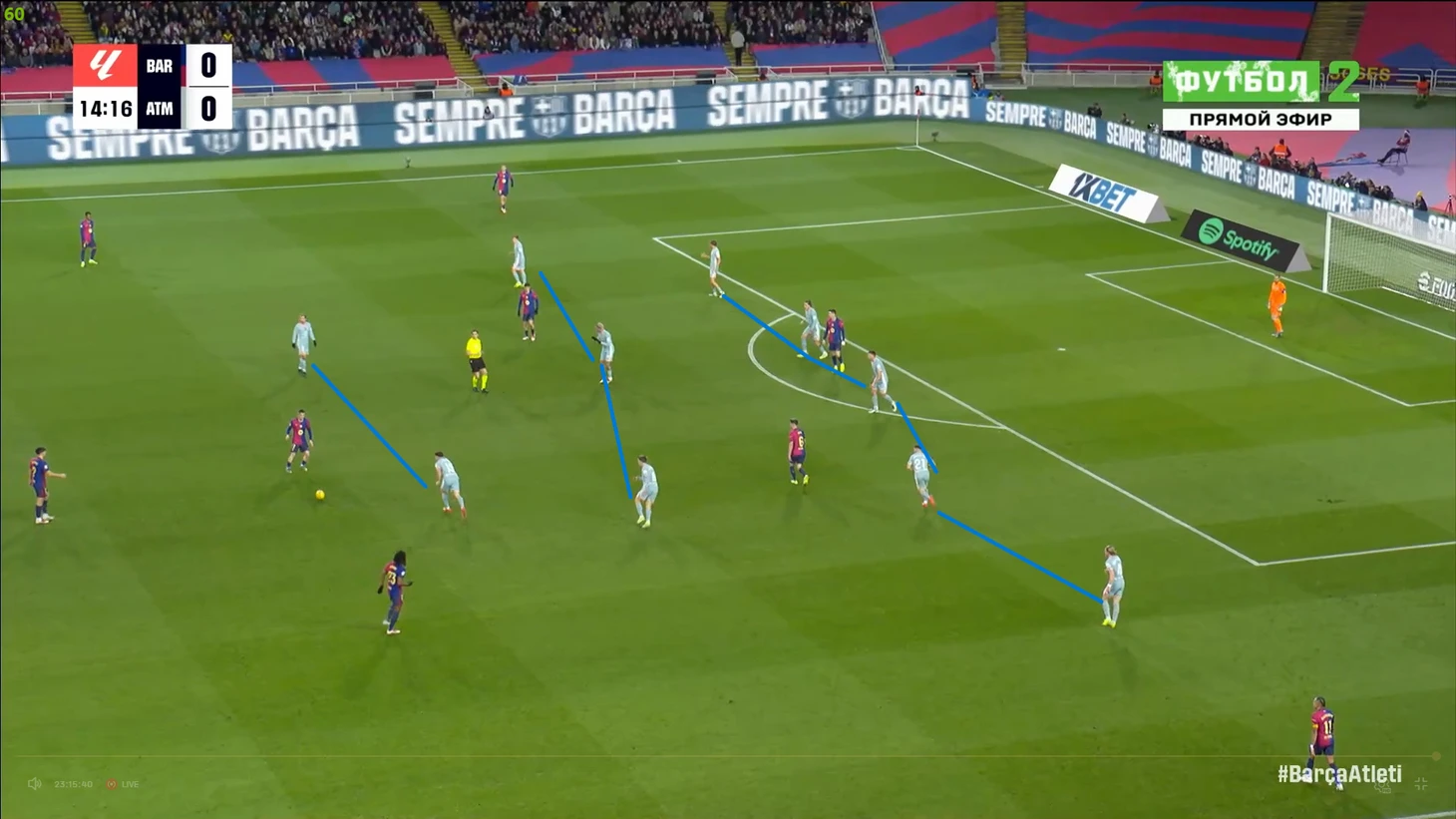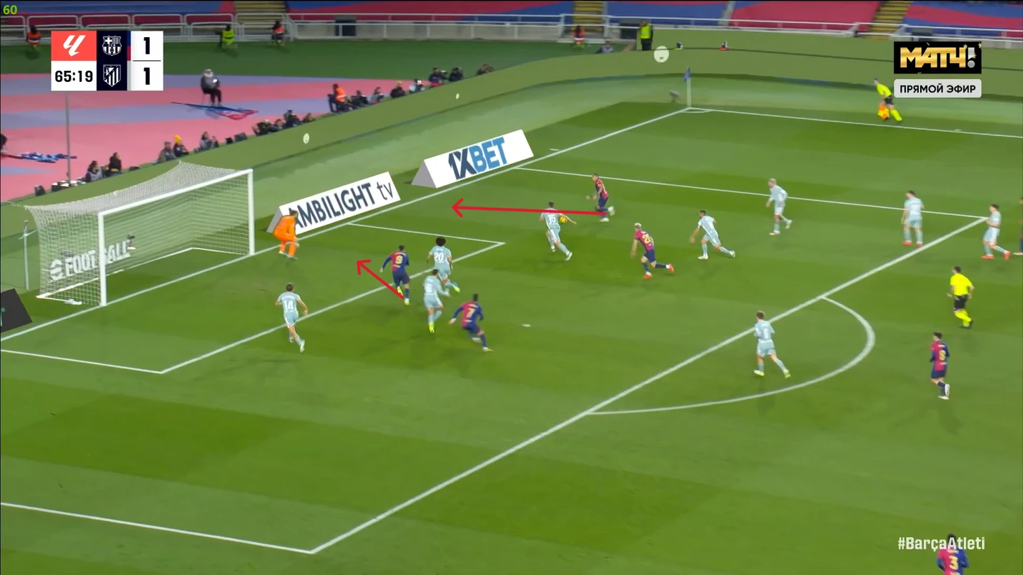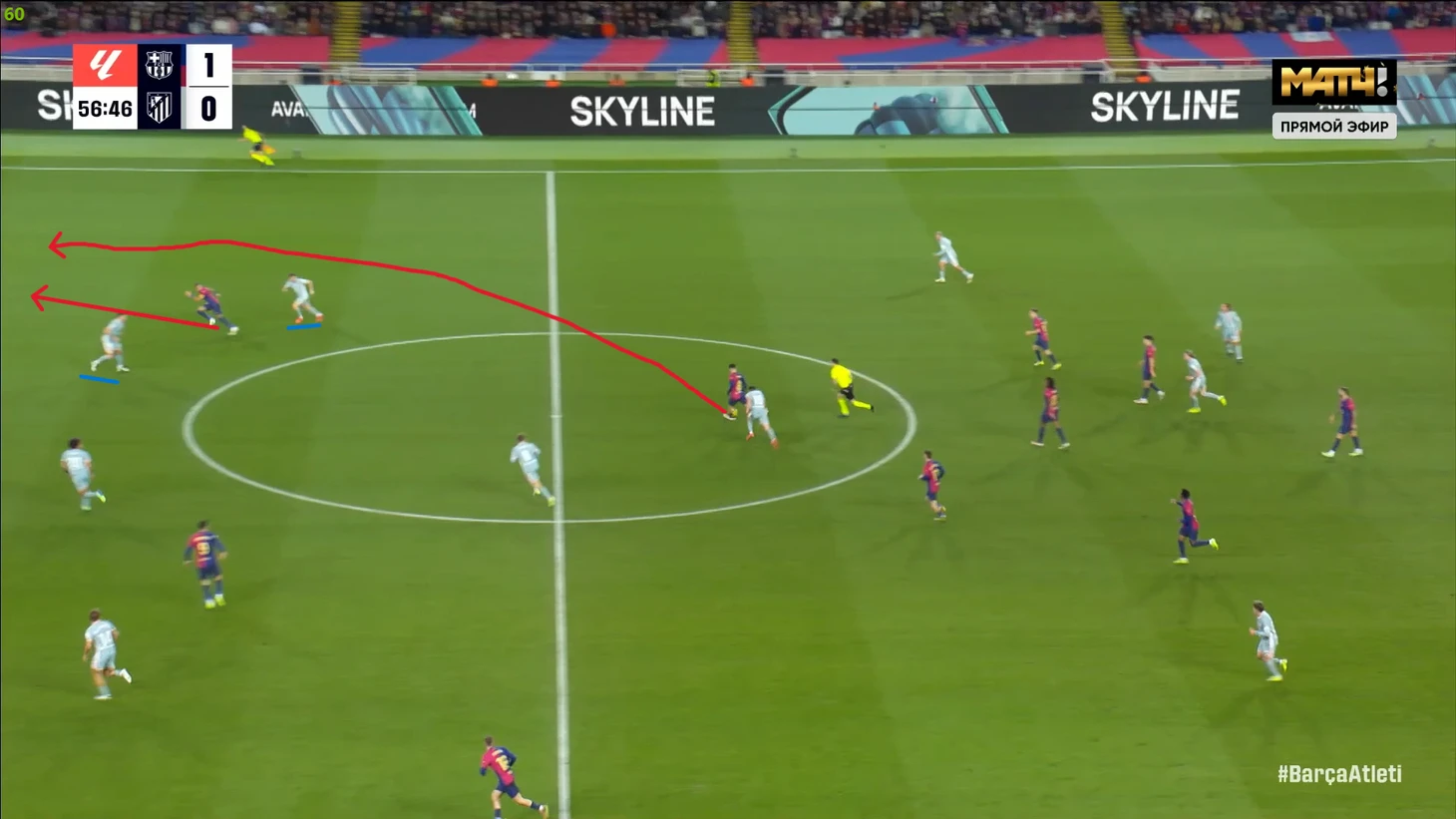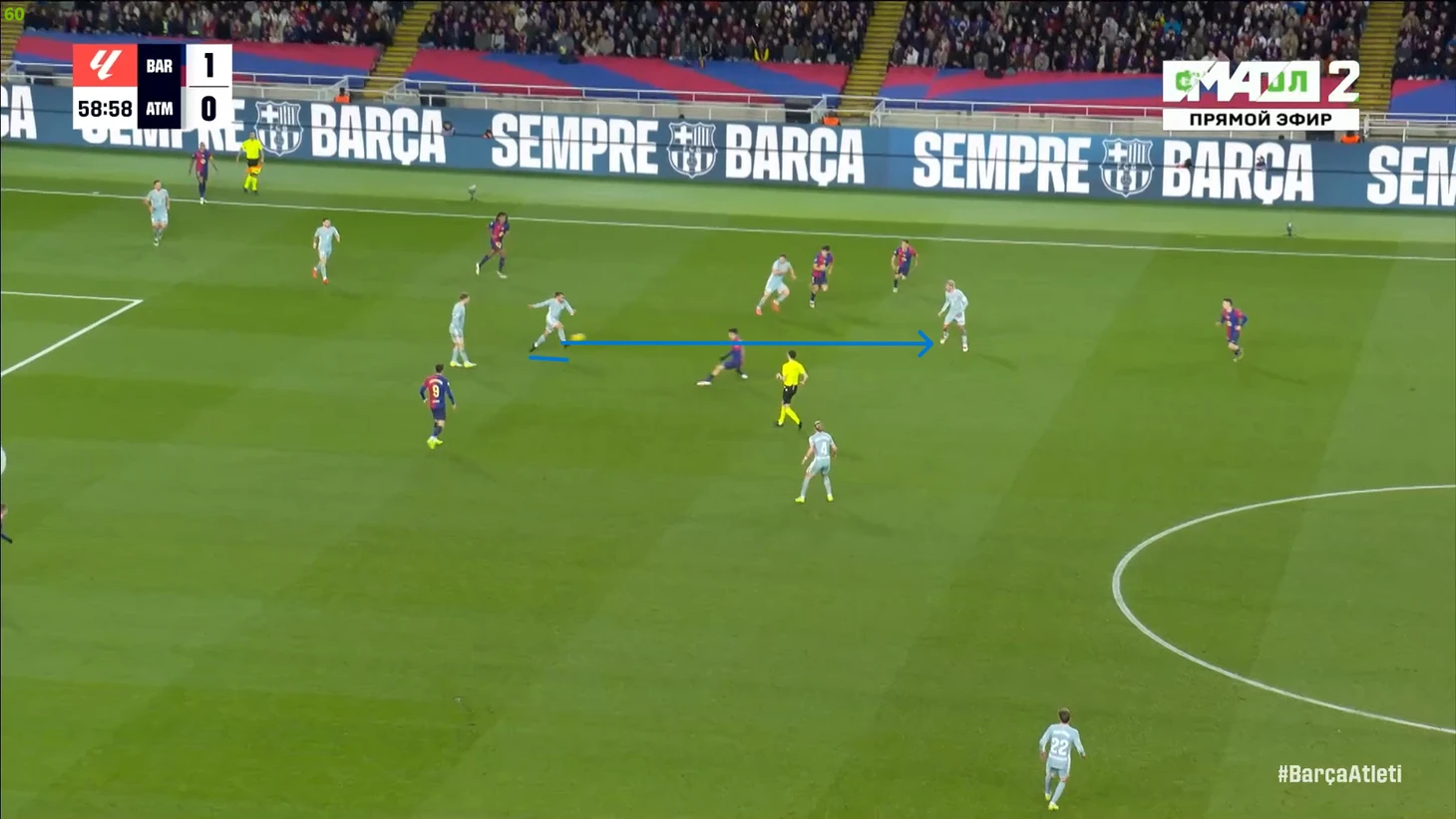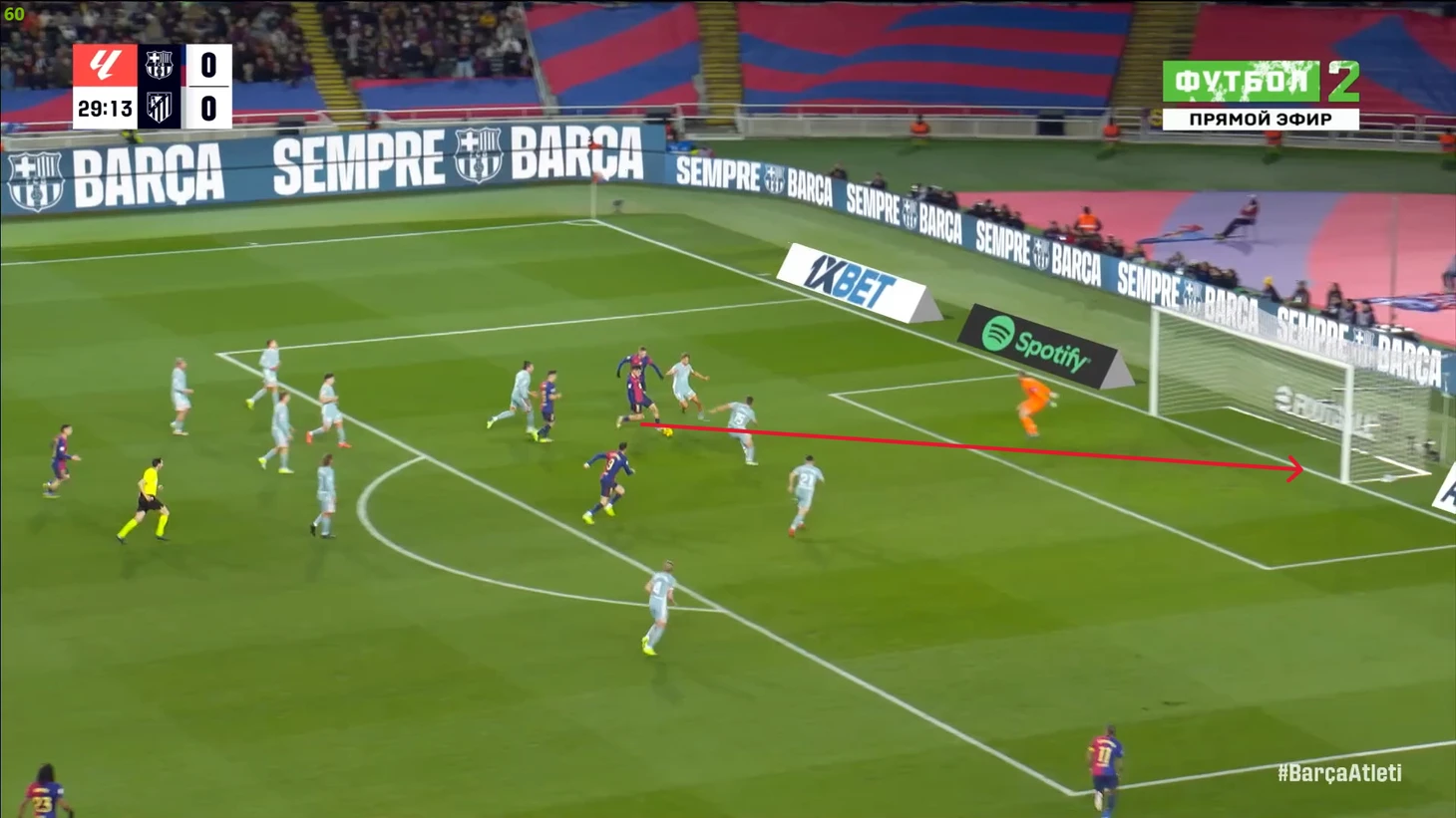 Тем не менее, «Барса» продолжала ловить «Атлетико» на контратаках. Команду которая вообще не атаковала (как и говорил Симеоне на пресс-конференции), они умудрялись ловить на контратаках, фантастика просто! И опять же, все это через фланг Рафиньи. Вот самый показательный момент в этом плане: