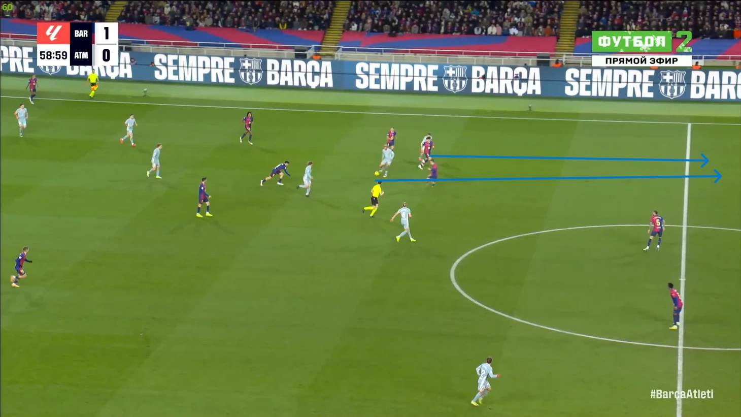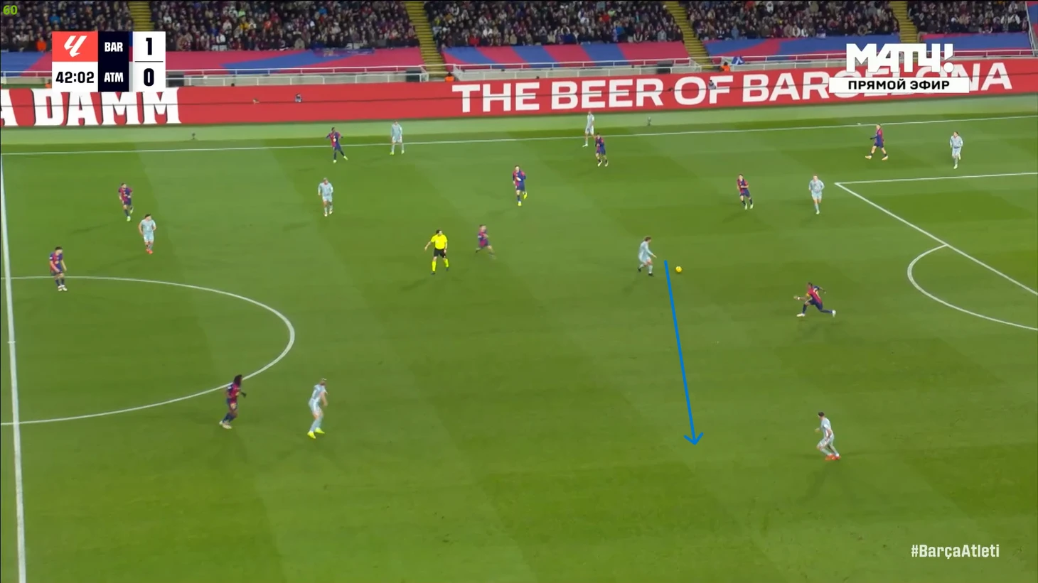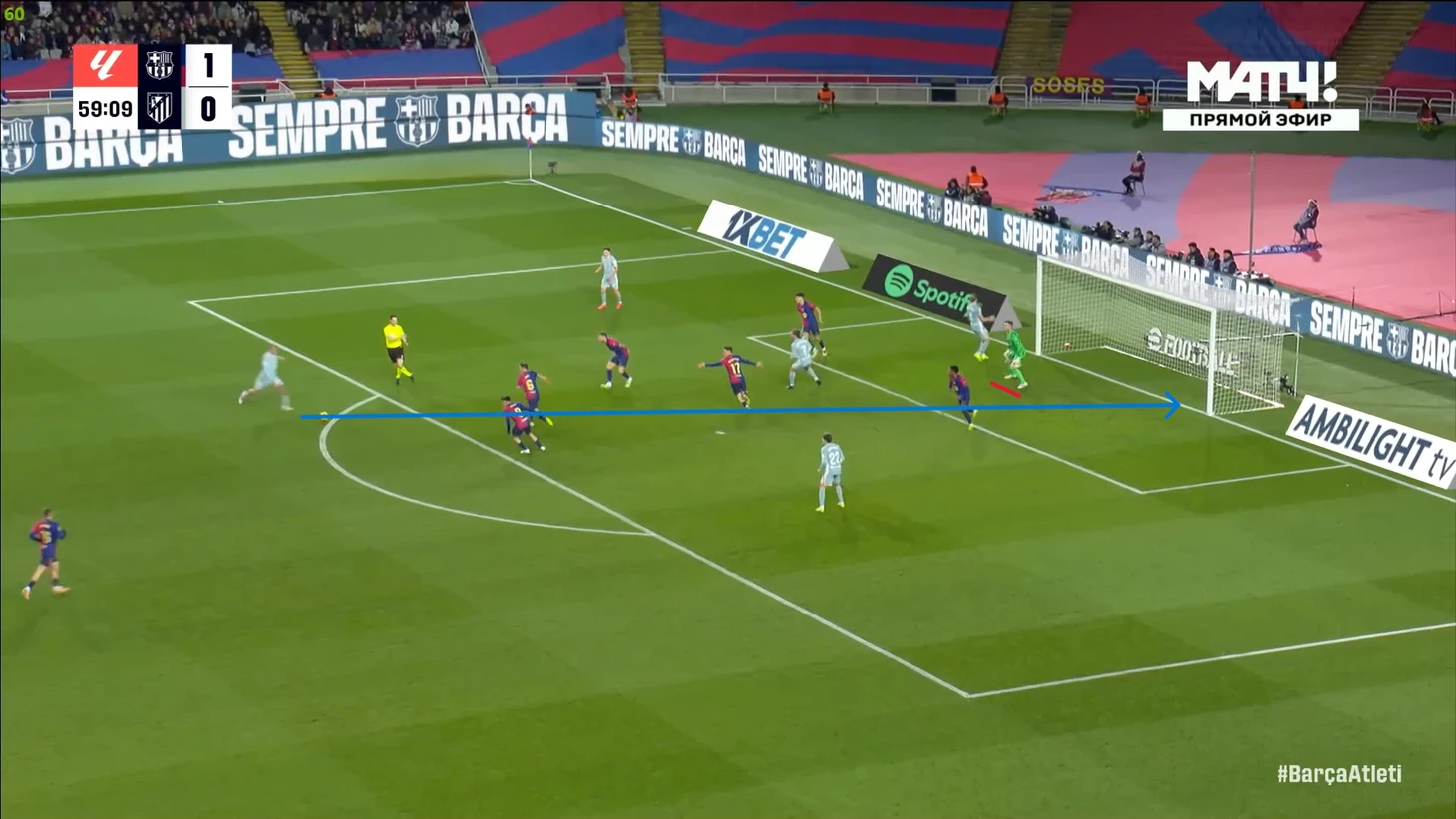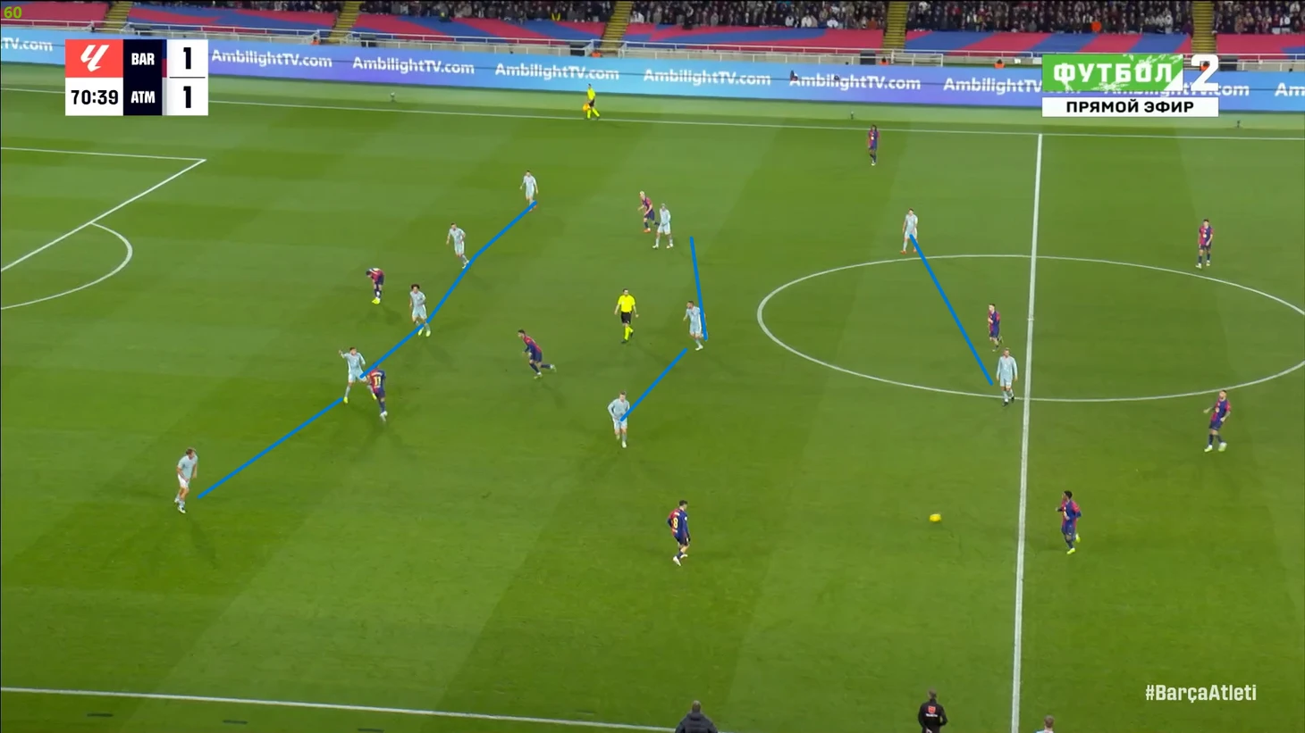 Тем не менее, «Барса» продолжала ловить «Атлетико» на контратаках. Команду которая вообще не атаковала (как и говорил Симеоне на пресс-конференции), они умудрялись ловить на контратаках, фантастика просто! И опять же, все это через фланг Рафиньи. Вот самый показательный момент в этом плане: