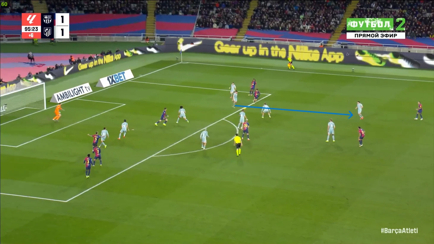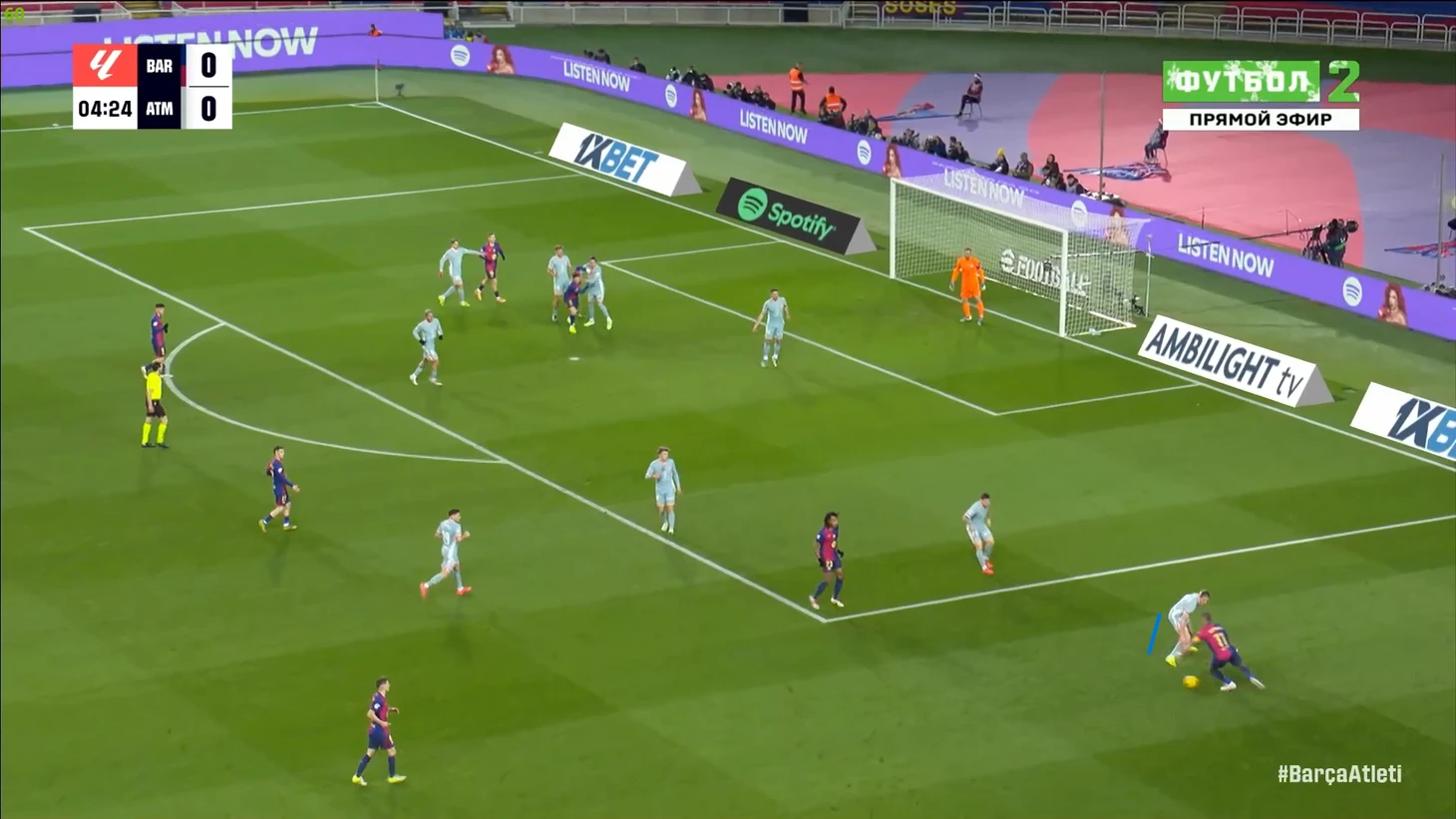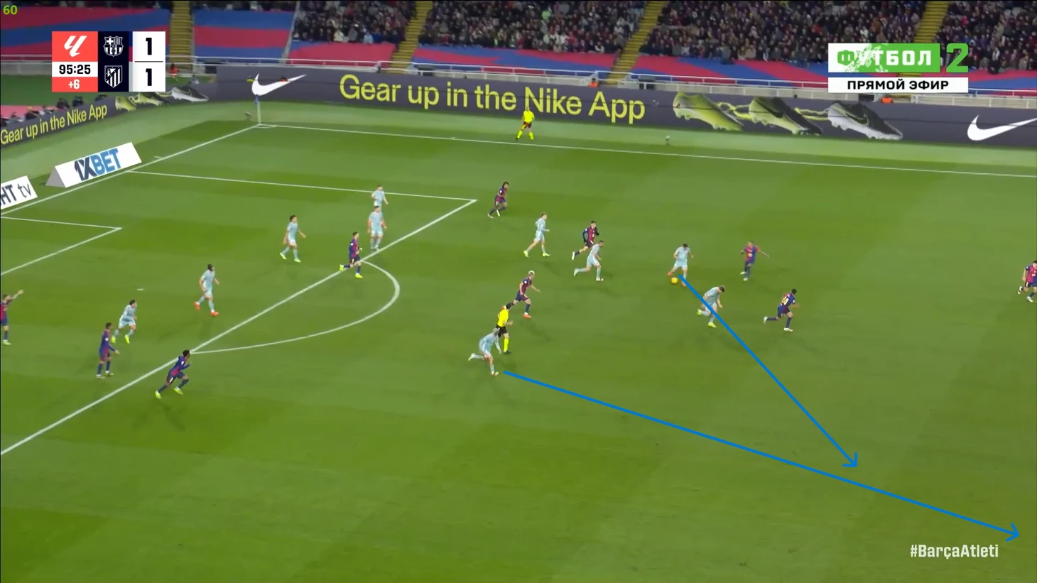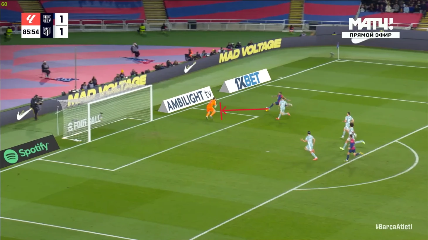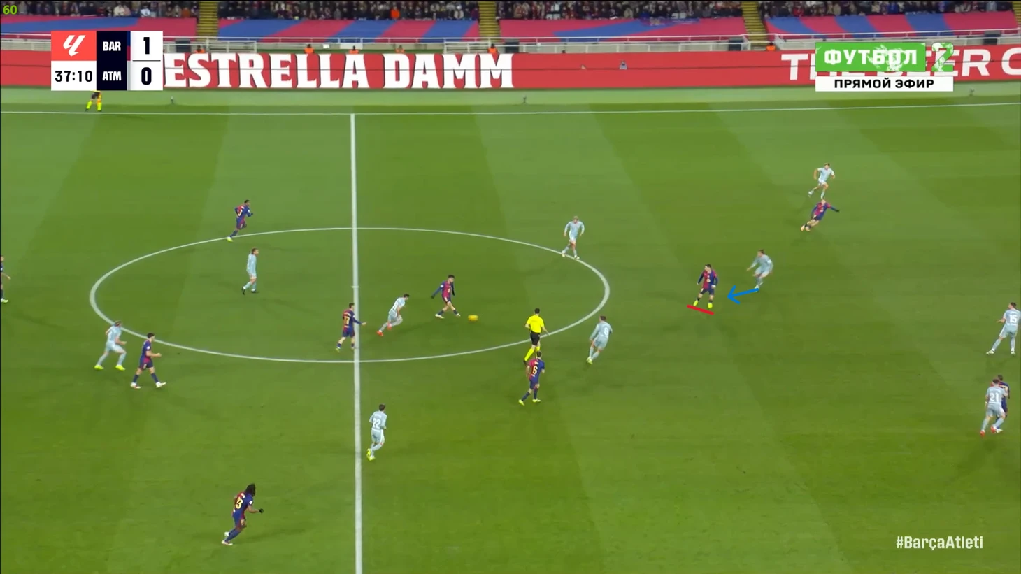 Тем не менее, «Барса» продолжала ловить «Атлетико» на контратаках. Команду которая вообще не атаковала (как и говорил Симеоне на пресс-конференции), они умудрялись ловить на контратаках, фантастика просто! И опять же, все это через фланг Рафиньи. Вот самый показательный момент в этом плане: