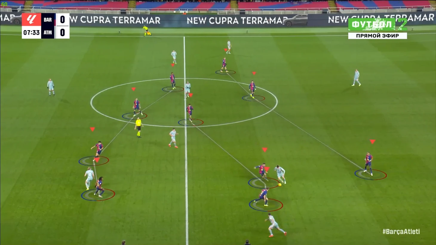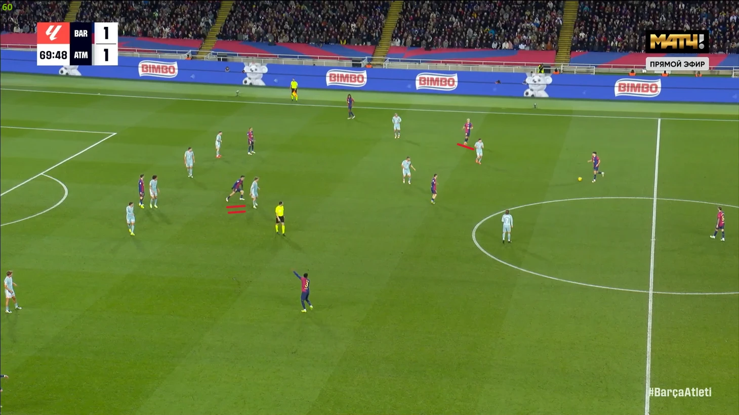 В момент начала голевой атаки на таймере 29:09 и все игроки «Атлетико» находятся за линией мяча, а в 29:14 мяч уже в сетке ворот. Вот так «непреступная» оборона мадридцев развалилась за 5 секунд в полном составе. Понятно, что здесь абсолютно гениально сыграл Педри и увидел этот главный коридор между линиями у соперника, а он же такой наглости и простого прохода никак не ожидал. Плюс пас Гави пяткой, кончено, несколько случаен, но тоже походит на шедевр. В целом, по тактике «каталонцев» мыслей меньше, ведь они провели просто свой стандартный хороший матч, и во многом, без каких-то примечательных тактических моментов, а так игры «сине-гранатовых» мы уже не раз разбирали, можете спокойно почитать) Тем не менее, одно очень важное изменение Флик все же должен был произвести, ведь на месяц вылетел Ямаль после игры с «Леганесом», а значит его надо было заменить, и в целом, кажется, что командными взаимодействиями «Барса» смогла воспроизвести, как минимум, немалую часть функционала Ламина.
