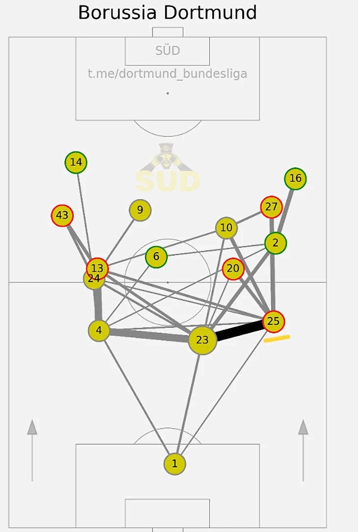 Средние позиции игроков «Дортмунда» в том матче. 25-й номер – Зюле