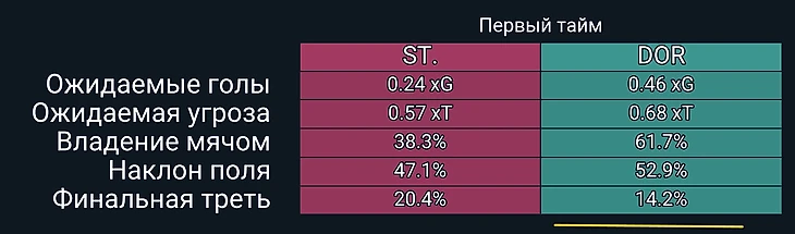 Общая продвинутая статистика первого тайма матча в Гамбурге.