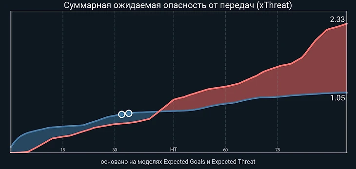 А во-вторых, xThreat. Это не особо про продвижение, а как раз про обострение, и тут антиперфоманс Рами сравнится разве что с подобным от Рейны в этой же игре: