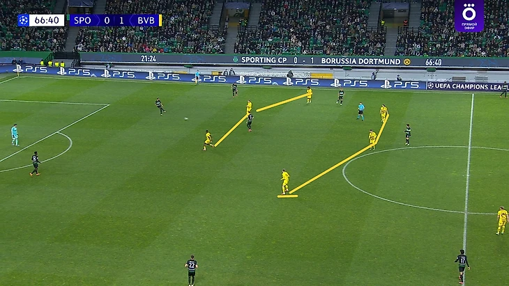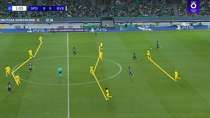 Уходя от персоналий, в первую очередь скажу про игру «Дортмунда» без мяча, которая буквально каждый матч претерпевает значительные изменения, и этот исключением не стал