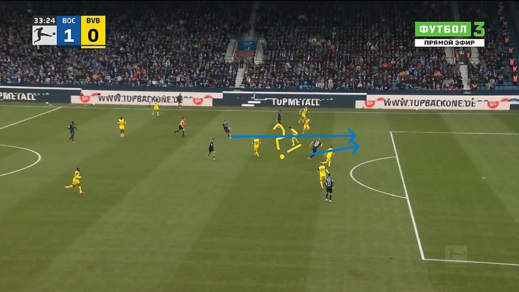 Однако, как только атаки «Бохума» достигали финальной трети, Никлас менялся с Джаном и уходил ближе к центру, что и было главной изначальной задумкой Нико Ковача при игре без мяча: