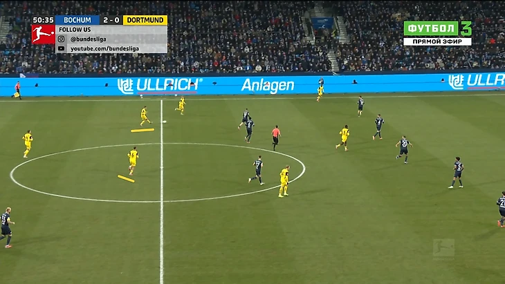 2) Рокировки производились уже в слишком опасных зонах. Джан и Зюле могли банально не успеть произвести грамотный обмен зонами до того, как в одну из них пойдет навес или проникающая передача от игроков «Бохума», ведь опять же, происходили они только тогда, когда хозяева достигали финальной трети