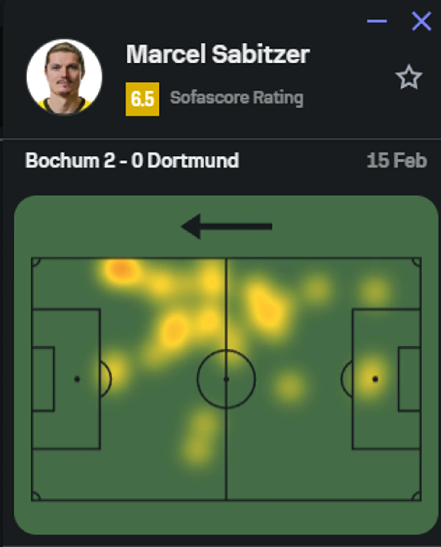Тепловая карта Гиттенса в его последней игре в Бундеслиге – с «Бохумом»
