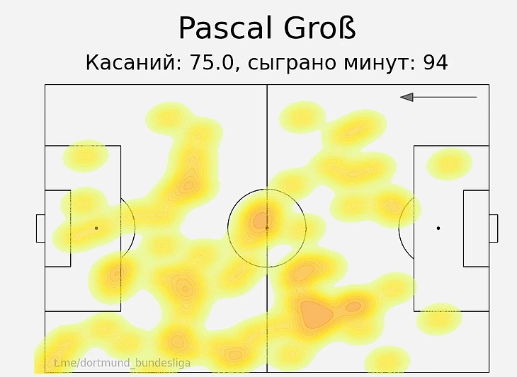 Это же говорит и карта действий с мячом Юлиана, где ближе к финальной трети Брандт находился справа: