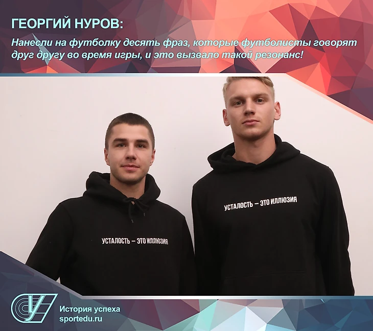 Георгий Нуров — выпускник кафедры теории и методики футбола РГУФКСМиТ, профессиональный футболист, а еще организатор и вдохновитель проекта «Ничего Обычного», стартовавшего всего год назад, но уже собравшего более семи тысяч подписчиков в Instagram. Тогда он со своими друзьями придумал писать на футболках и худи популярные в футбольной среде фразы: «Усталость — это иллюзия», «На опыте», «Отдал. Открылся» и другие.