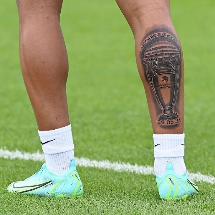 Защитник лондонского "Челси" - Рис Джеймс вернулся после летнего отпуска , и у него новая яркая татуировка, которая понравится всем фанатам "синих" ,напоминающая их замечательный триумф в Лиге чемпионов в мае.
