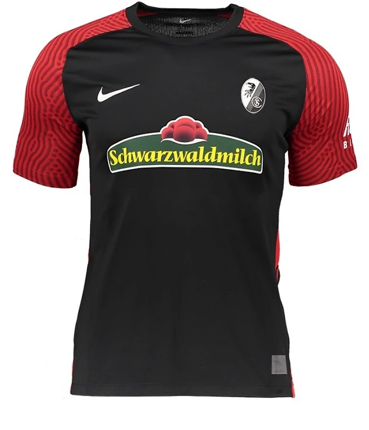 Дополнительный комплект выглядит "блэкаутом" в духе футболки сборной Германии на Евро-2020. Только воротник и рукава имеют разные цвета - они наполовину красные, наполовину белые.