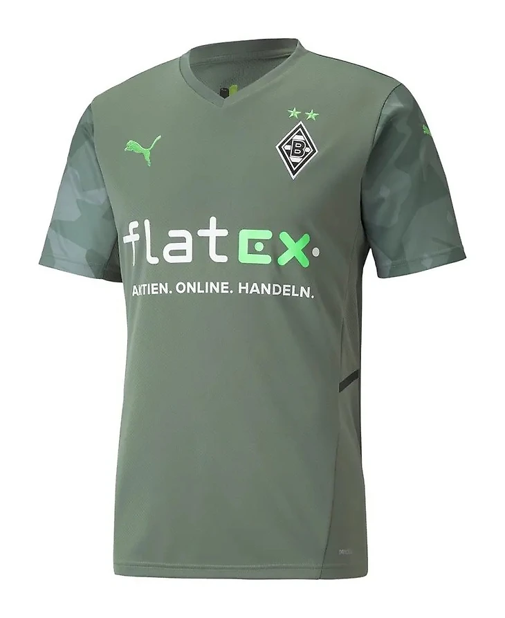 Домашний набор преимущественно белого цвета, отличается привлекательным рисунком, который покрывает переднюю и нижнюю часть спины и имеет очень светлый оттенок зеленого. Тот же оттенок зеленого повторяется для логотипов Puma и значка клуба на груди, а также для манжет на рукавах и v-образного воротника.
