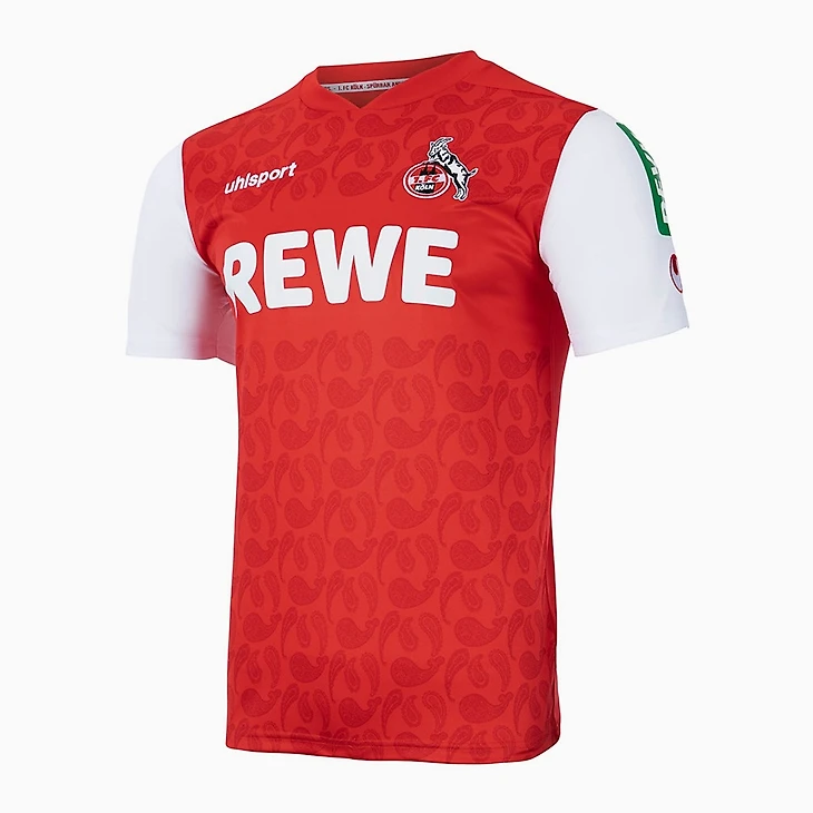 Домашний набор выполнен в красно-белых цветах клуба, спереди изображен рисунок "М", напоминающий популярный клетчатый дизайн 1996/97 годов. Обратная сторона полностью красная, в то время как золотые полосы на боковой стороне указывают на дом и сердце клуба как на золотой город на Рейне.