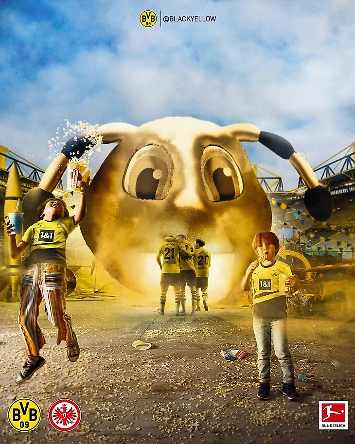 Мне сразу вспоминается работа СММ-щика Боруссии, который оформляет обложки к матчам в стиле популярных музыкальных альбомов.