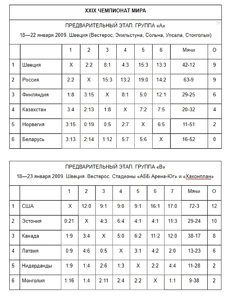 Завершали предварительный этап наши игрой с некогда грозной Финляндией, и результат (15:3) стал для многих настоящим шоком. Ровно треть наших мячей забил Евгений Иванушкин, ставший в итоге вместе со шведом Хедквистом лучшим бомбардиром ЧМ-2009 (по 14 мячей). После матча, в котором россияне набрали 30 минут штрафного времени, Владимир Янко выдал очередную нетленку: «Если ориентироваться на решения арбитров, то в моей команде играют какие-то головорезы с топорами».